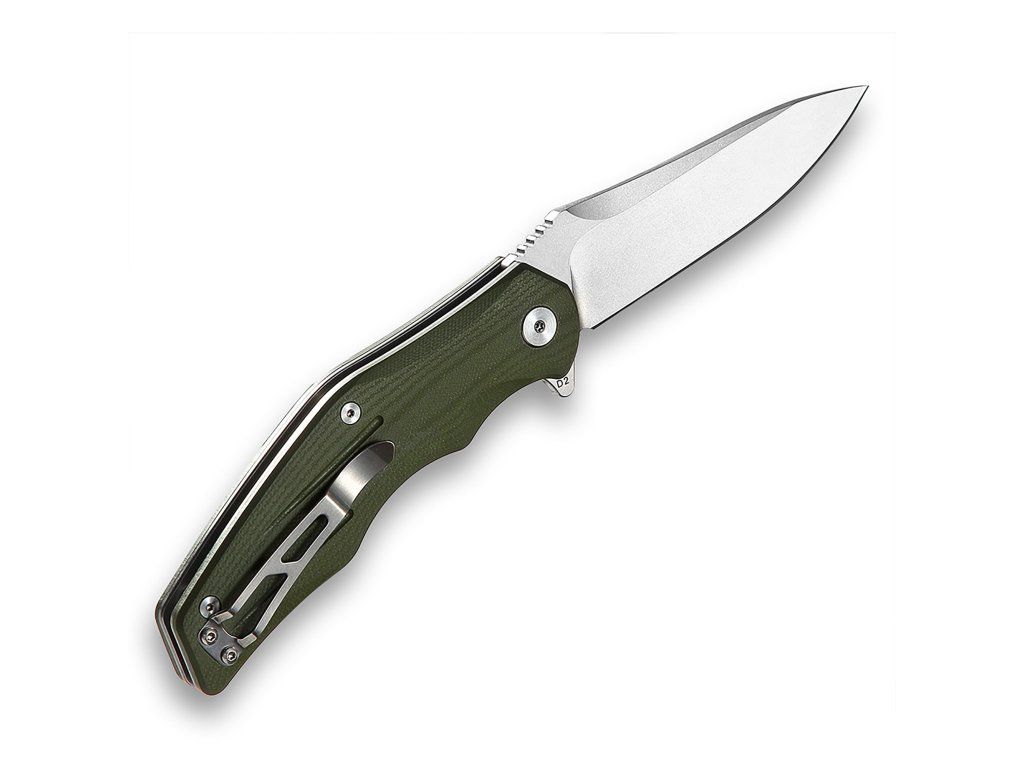 Typ: Pocket knife | Materiál: Blade: D2, stonewash, Handle: green G10 | Rozmery: Overall: 8.50''(216mm); Handle: 4.75''(121mm); Blade: 3.75''(95mm); Blade thickness: +/-3.5mm Net weight: +/-150g ( 5.3oz ) | Zámok: Liner lock | Tvrdosť ocele: 58-60 HRC | Výrobca: QSP KnifeDodatočné parametre
