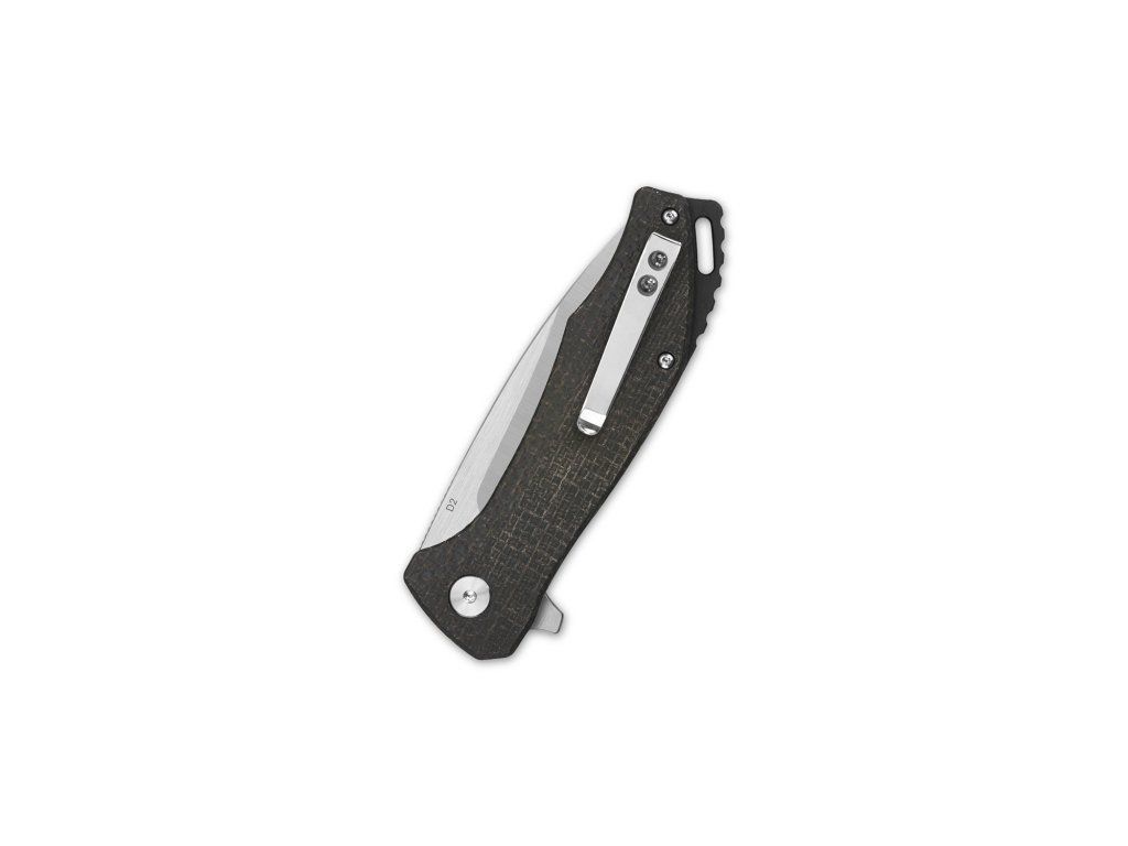 Typ: Pocket knife | Materiál: Blade: D2, 2 tone satin, Handle: Dark brown rough micarta | Rozmery: Overall: 7.875''(200mm); Handle: 4.5''(114mm); Blade: 3.375''(86mm); Blade thickness: +/-3.5mm Net weight: +/-119g ( 4.2oz ) | Zámok: Liner lock | Tvrdosť ocele: 58-60 HRC | Výrobca: QSP KnifeDodatočné parametre