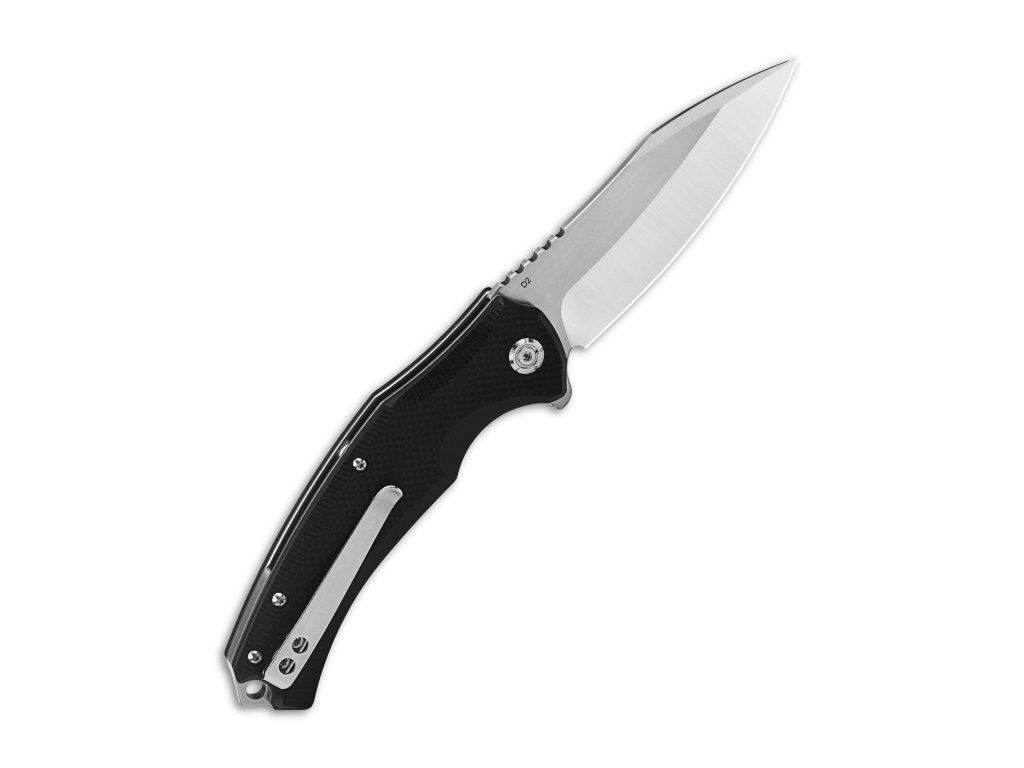 Typ: Pocket knife | Materiál: Blade: D2, 2 tone satin, Handle: black G10 | Rozmery: Overall: 8.325''(212mm); Handle: 4.75''(121mm); Blade: 3.575''(91mm); Blade thickness: +/-3.5mm Net weight: +/-150g ( 5.3oz ) | Zámok: Liner lock | Tvrdosť ocele: 58-60 HRC | Výrobca: QSP KnifeDodatočné parametre