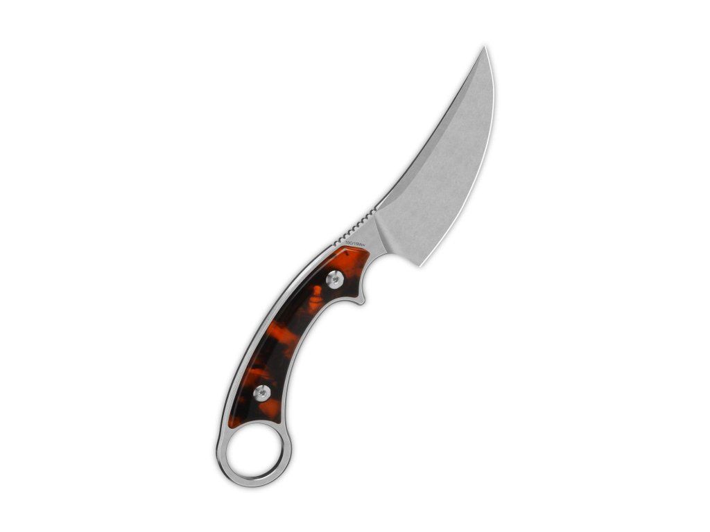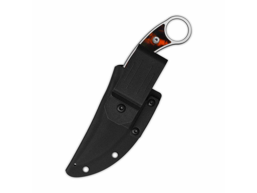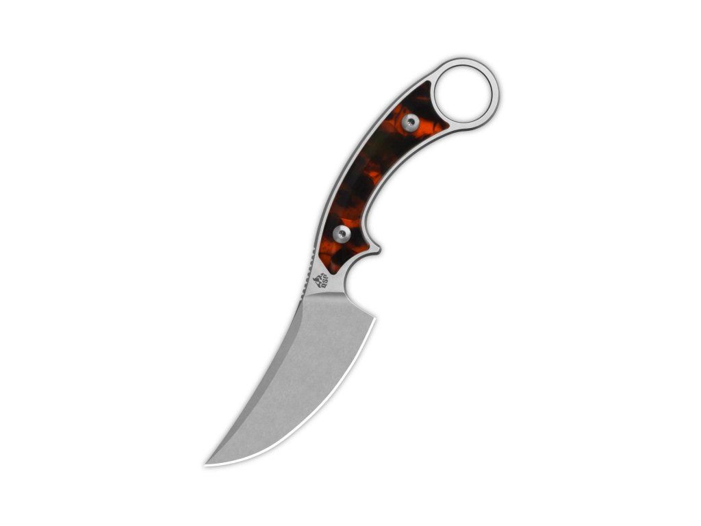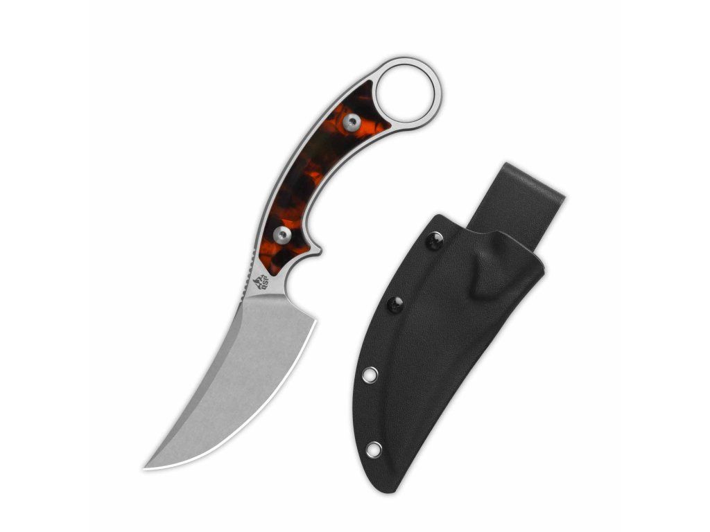 Typ: Fixed blade knife | Materiál: Blade: 10Cr15MoV (equal to VG10), stonewash, Handle: Tortoise resin | Rozmery: Overall: 8.5'' ( 215mm ); Handle: 4.5''( 114mm ); Blade: 4.0" ( 101mm ; Blade thickness: +/-4.5mm Net weight: +/-110g (3.88oz) | Tvrdosť ocele: 59-61 HRC | Puzdro: Kydex | Výrobca: QSP KnifeDodatočné parametre